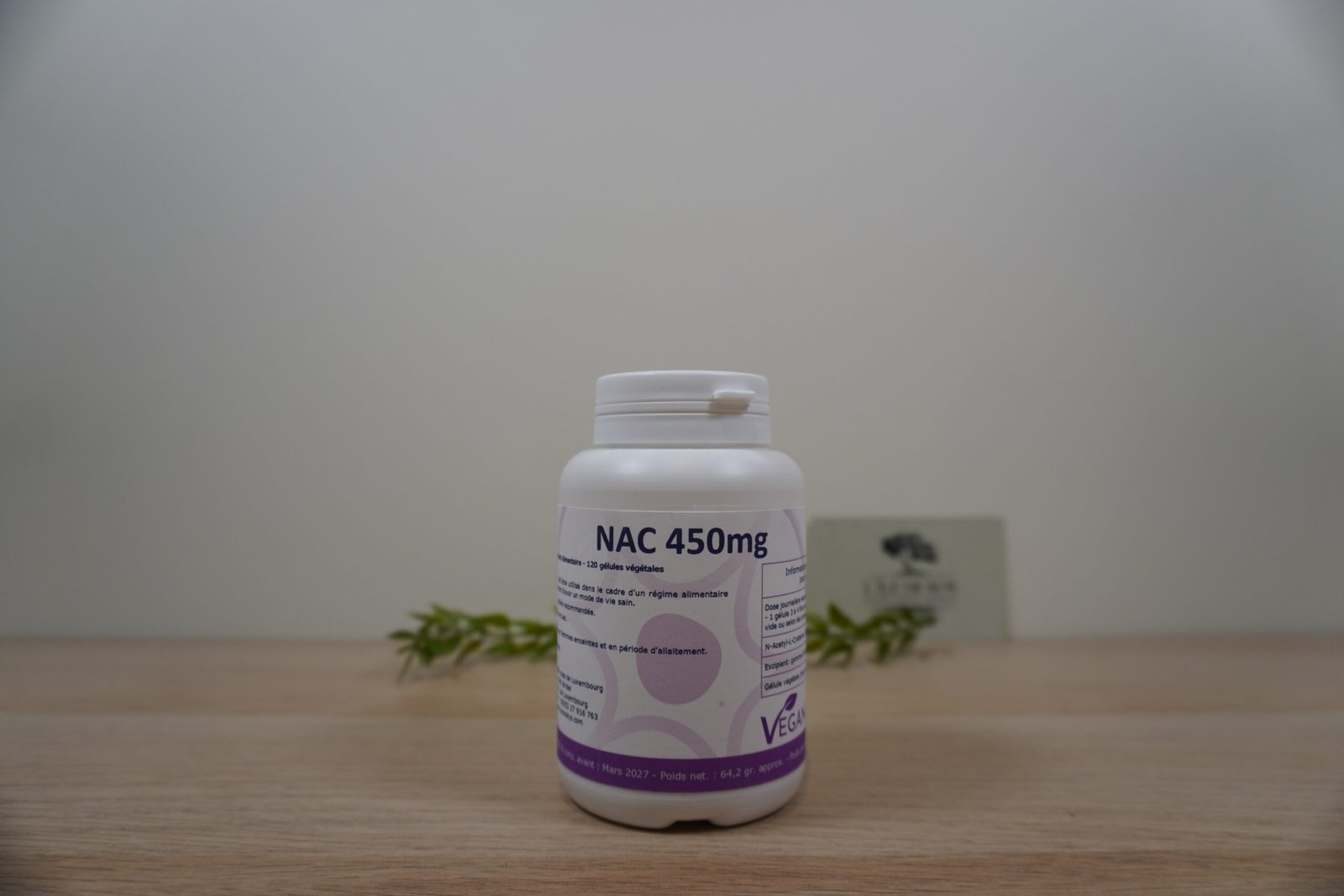 Chaque gélule apporte 450 mg de N-acétyl-L-cystéine, dans une formule simple et épurée, avec gélule végétale (HPMC).